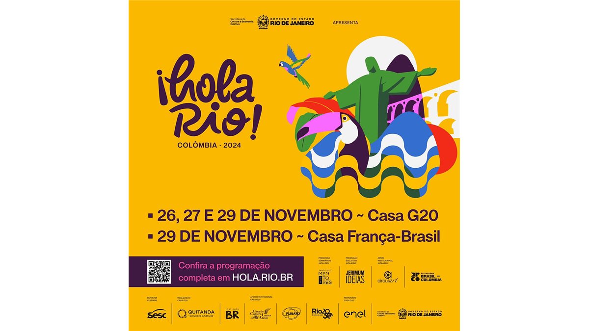 De 26 a 29 de novembro, o Rio de Janeiro será tomado por um evento transformador: o ¡Hola Rio! Colômbia 2024, fruto do convênio “Ano Rio-Colômbia”. A iniciativa traz seminários, oficinas, apresentações artísticas e muita troca de saberes, celebrando as conexões entre o Rio e a Colômbia.