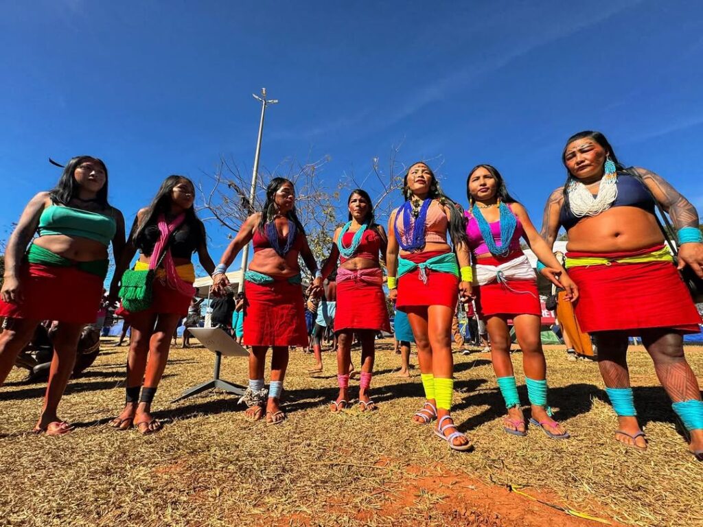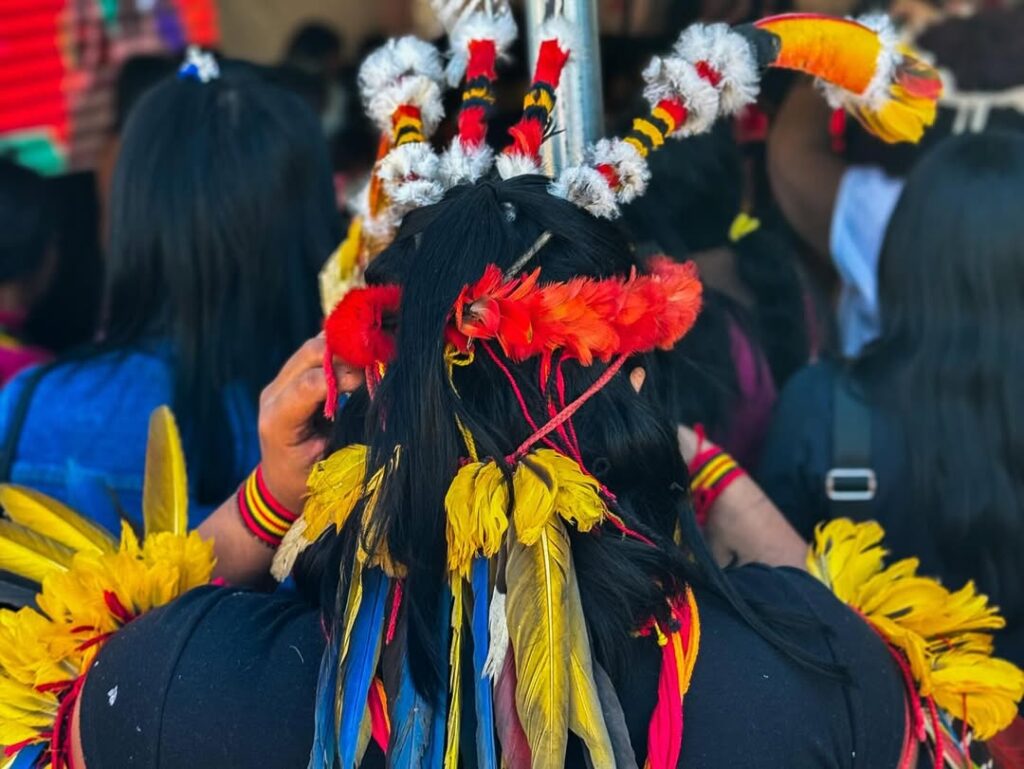 O violento processo de colonização organizado pela Coroa Portuguesa em terras indígenas, a Pindorama, já carregava em seu fundamento a dominação e escravização dos povos originários, por motivos religiosos, políticos e econômicos. Nas terras em que hoje chamamos Brasil — nome escolhido pela árvore de seiva vermelha, em brasa, que poderia simbolizar também o sangue de nossos ancestrais — estima-se a existência de mais de 1.000 nações indígenas, cada uma com sua língua, organização social, cosmologia e território anteriores à colonização. Segundo Darcy Ribeiro, em O Povo Brasileiro, “O Brasil pré-cabralino era um continente de povos e línguas… Uma babel viva de nações.”. Já em sua origem, identificamos o total apagamento das línguas indígenas para a instauração do processo mercantil e colonial, a terra foi nomeada não pela sua geografia ou cultura nativa, mas pelo produto que a Europa desejava extrair e comercializar. Isso indica como o interesse econômico foi central na construção da identidade do país desde o início.